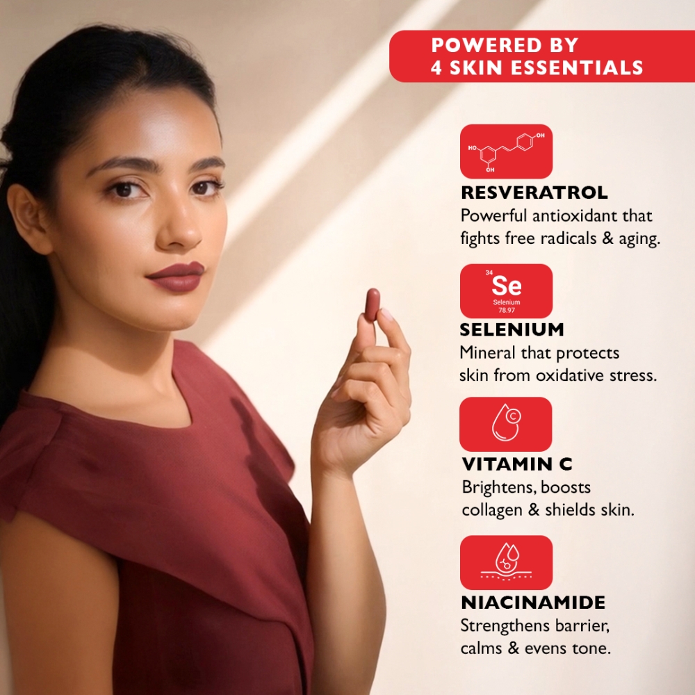 Resveratrol, Alpha Lipoic Acid (ALA), Niacinamide (Vitamin B3), Vitamin C, Vitamin E, Zinc, Biotin (Vitamin B7), Folic Acid (Vitamin B9), Selenium